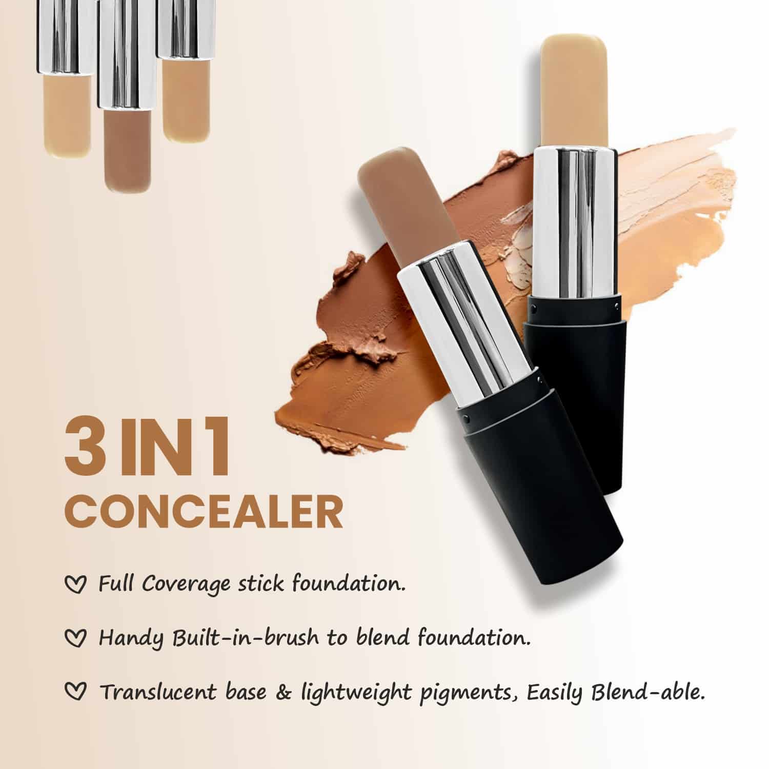 - Conceals under-eye circles, Soft, creamy contour and Highlighter stick.